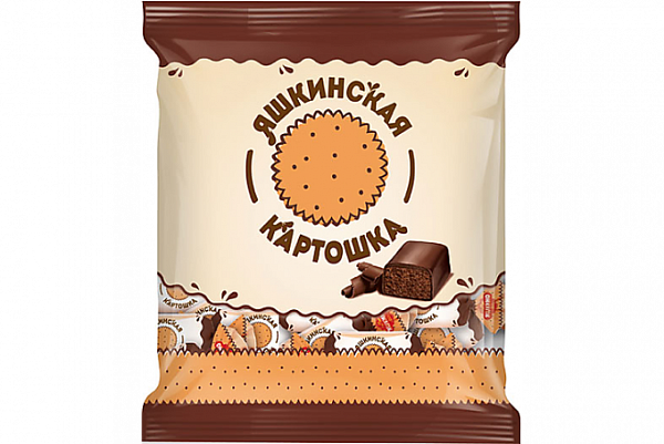 Конфеты Яшкинская картошка (KDV) 500 г или эквивалент, имеющий следующие характеристики: конфеты из пралине с добавлением сливочного печенья, покрытые глазурью, со вкусом пирожного «Картошка». Каждая конфета имеет индивидуальную упаковку. Потребительская упаковка: флоу-пак вес нетто 500 г.
